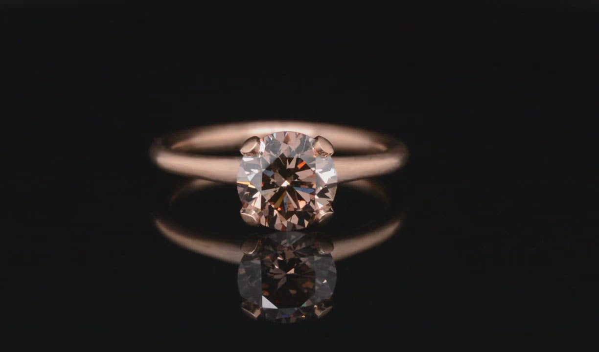 Modern 18ct rose gold 4-claw cognac diamond engagement ring