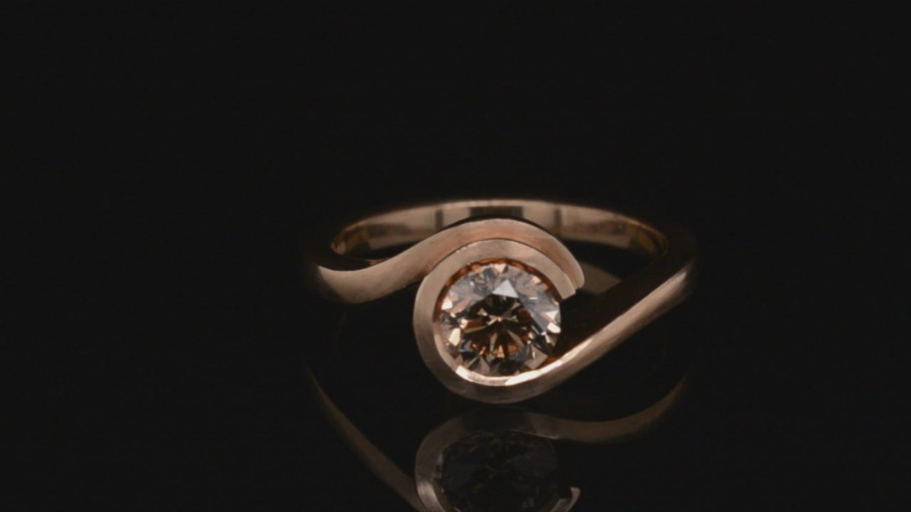A unique and curvy engagement ring, the 18ct Rose Gold Cognac Diamond Engagement Ring is the perfect unusual engagement ring idea for modern women. Featuring a bezel set natural brilliant cut cognac diamond (pictures are 1ct), this unique ring is an unusual and asymmetric twist on a solitaire engagement ring.