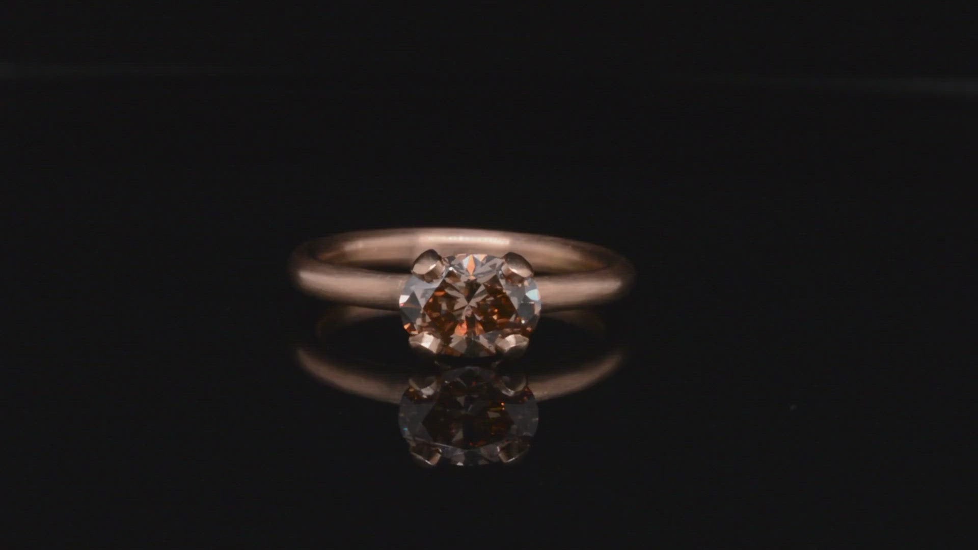 Modern 18ct rose gold 4-claw cognac diamond engagement ring