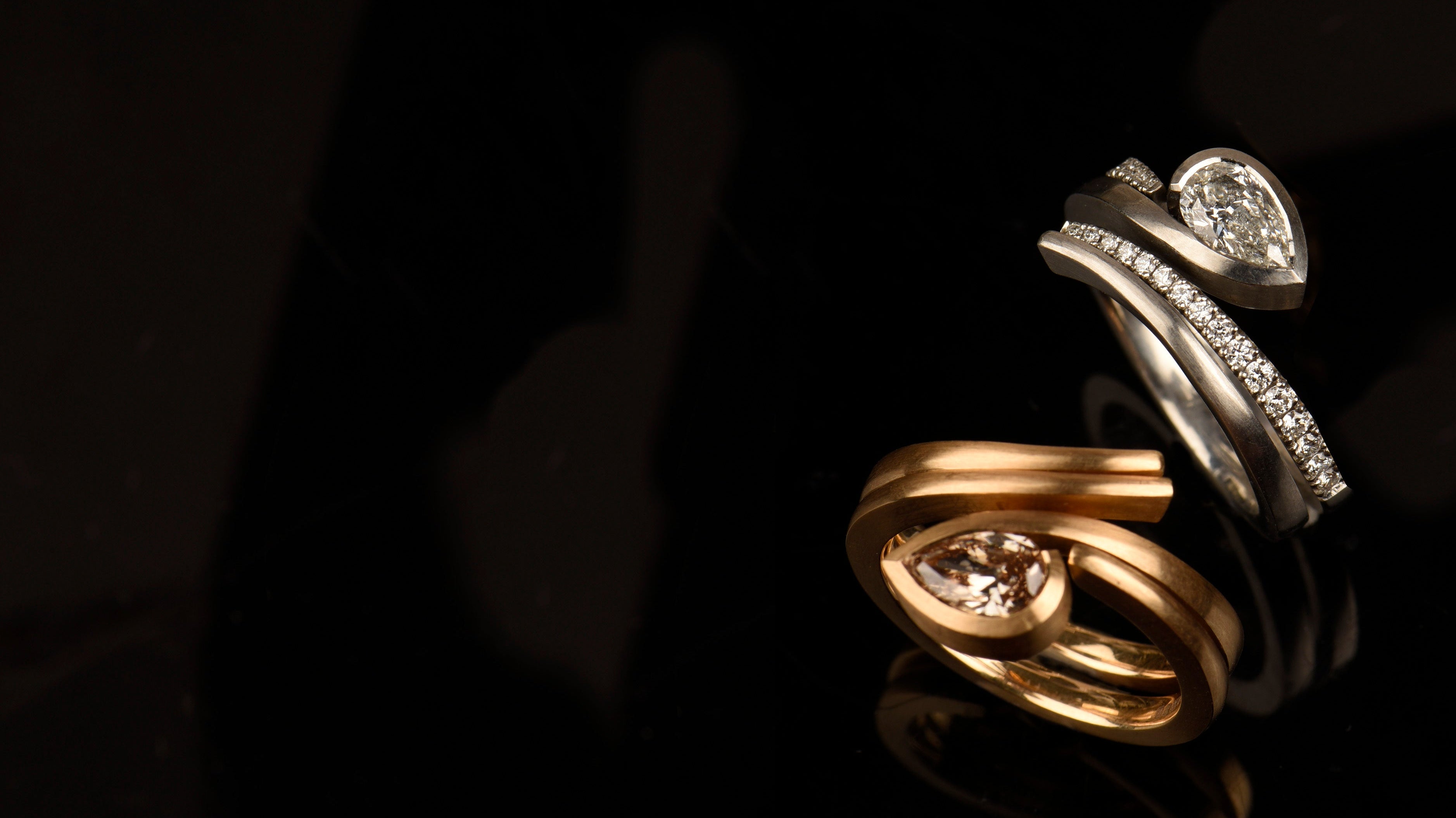18ct Rose Gold Pear-Shaped White Diamond Twist Ring