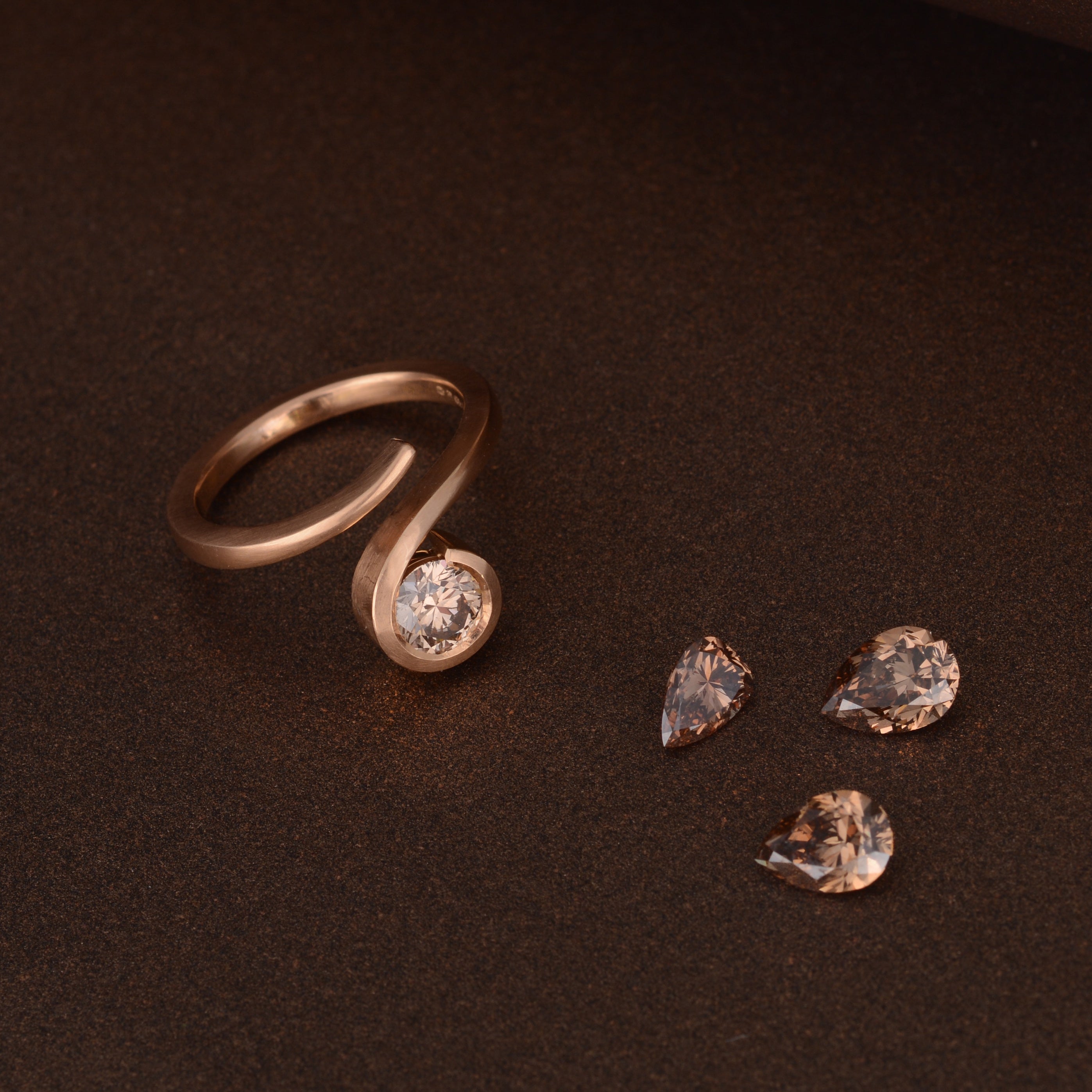 Mixing Cognac Diamonds with rose and yellow gold gives a feeling of warmth and luxury and makes for a perfect engagement ring.