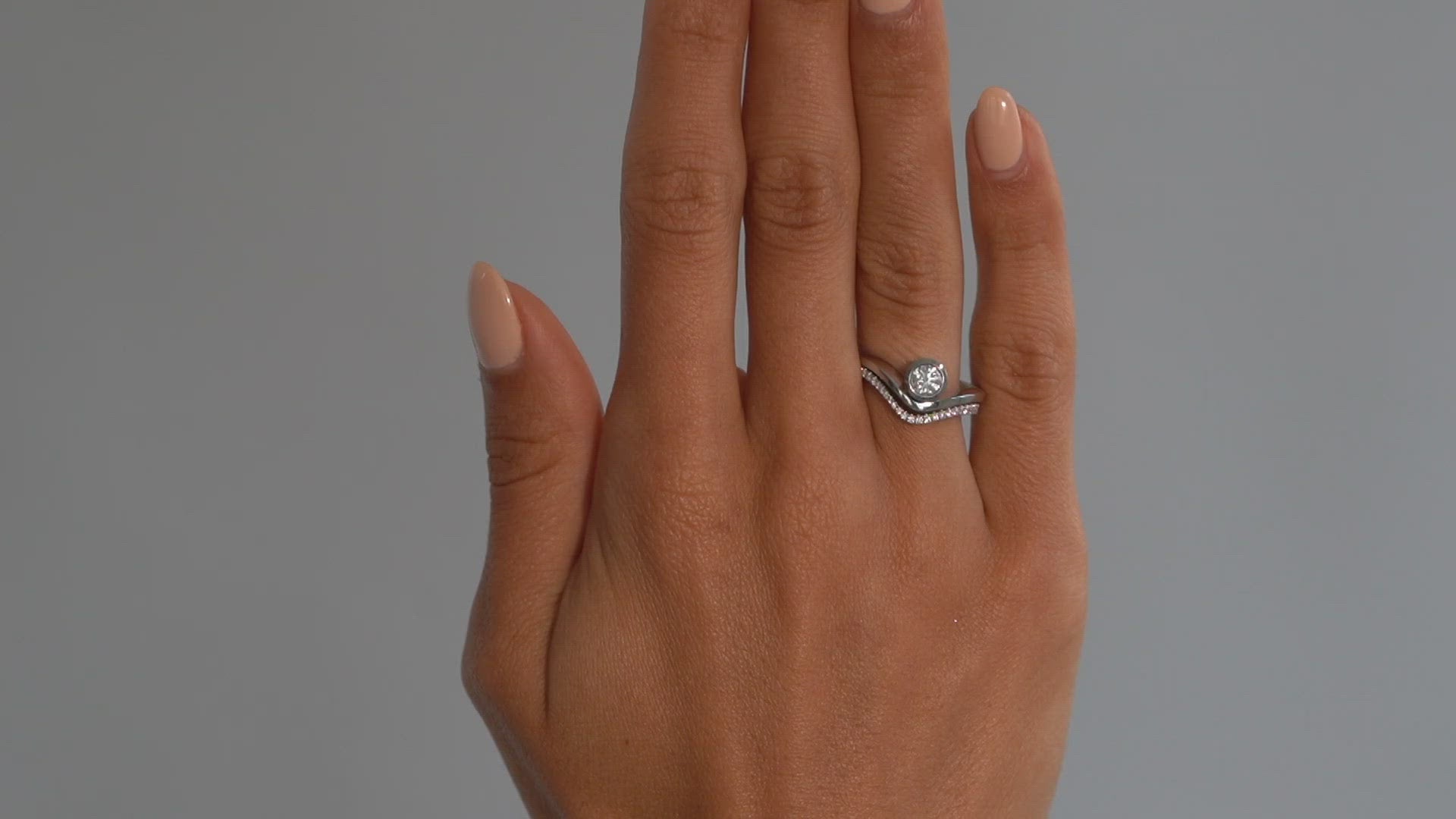 A matching fitted wedding band for our Balance engagement ring. Hand forged to follow to soft curves of the engagement ring. The band is half set with diamonds, highlighting the curves of the ring and accentuating the engagement ring's center stone.