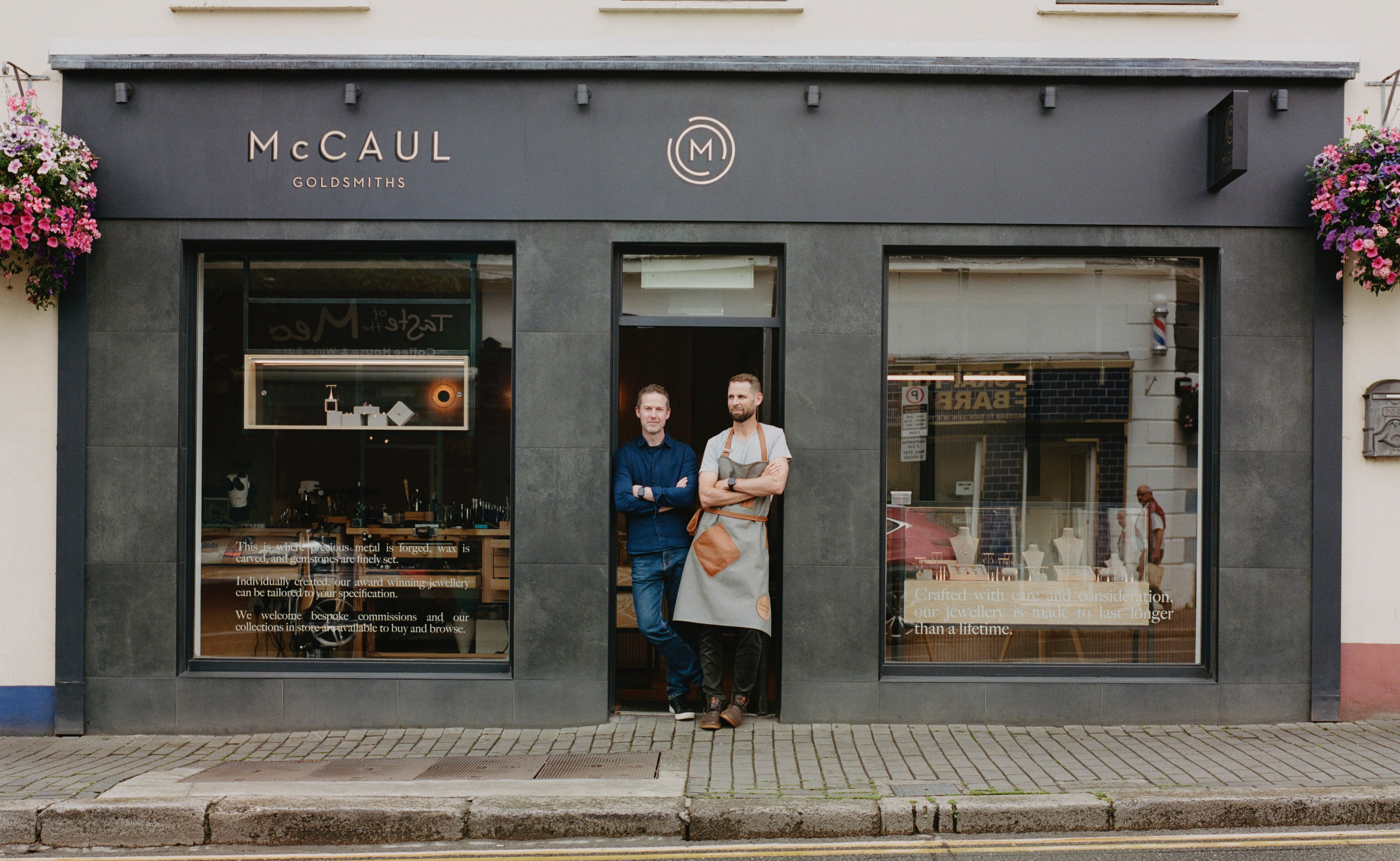 As sons of an art teacher and an Air Corps engineer, David and Barry McCaul inherited a reverence for design and a respect for technical skill — a dual influence that still informs every piece they create today. Although they initially pursued different paths — David as a designer and goldsmith, Barry in IT — craft and collaboration eventually drew them back together.